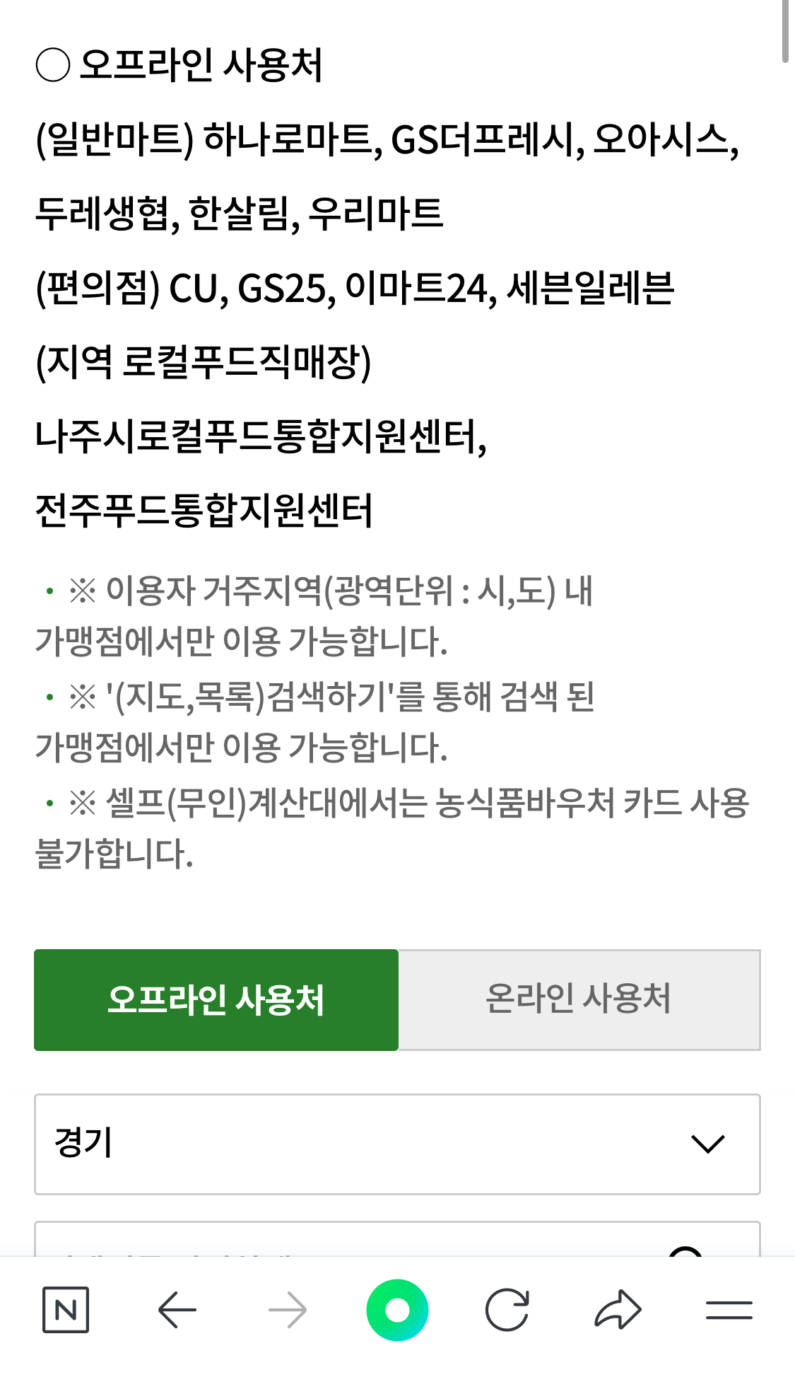 - 오프라인: 농협 하나로마트, 전통시장, 일부 편의점
