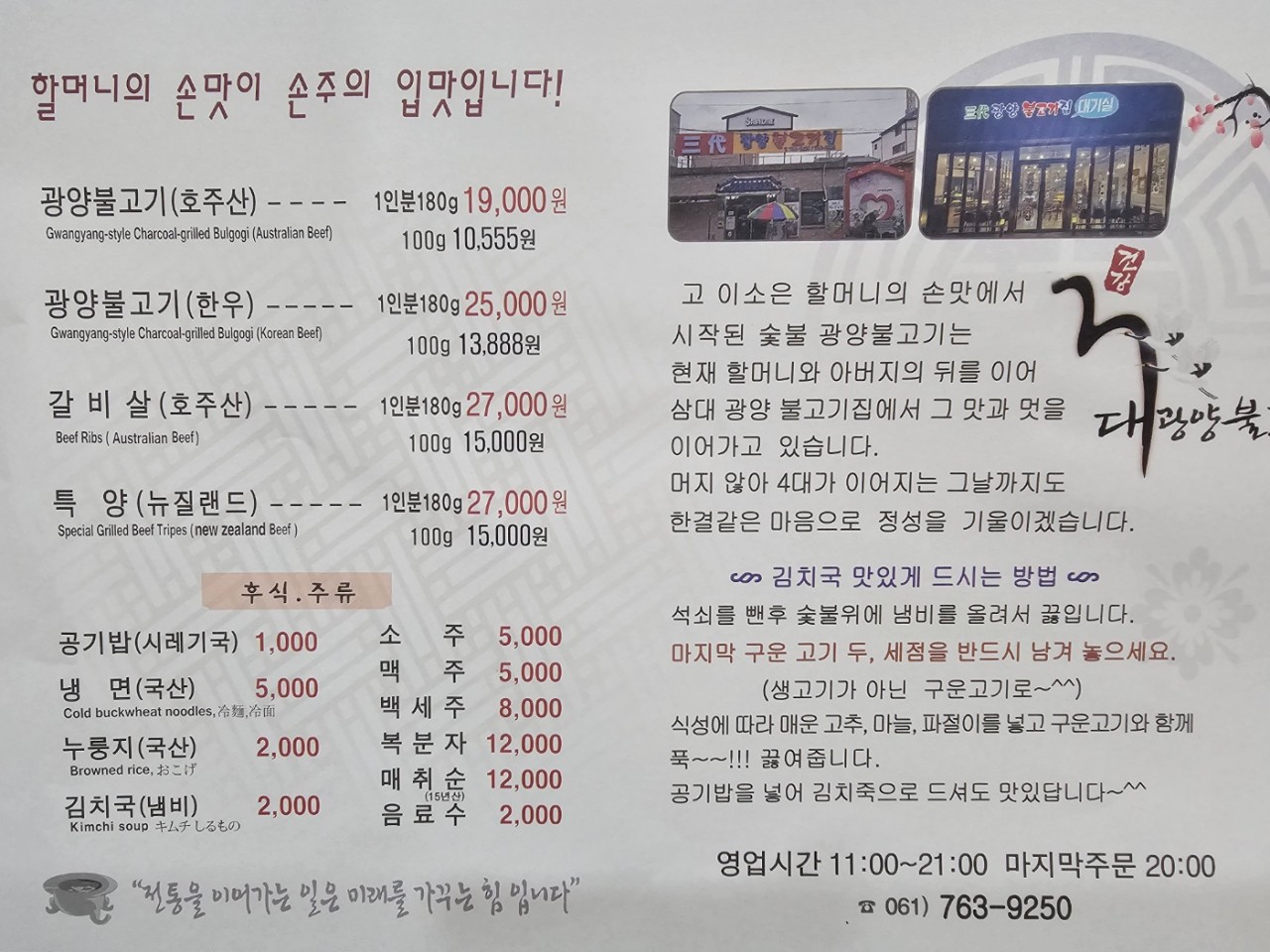 삼대광양불고기집 · 전라남도 광양시 광양읍 칠성리 959-11