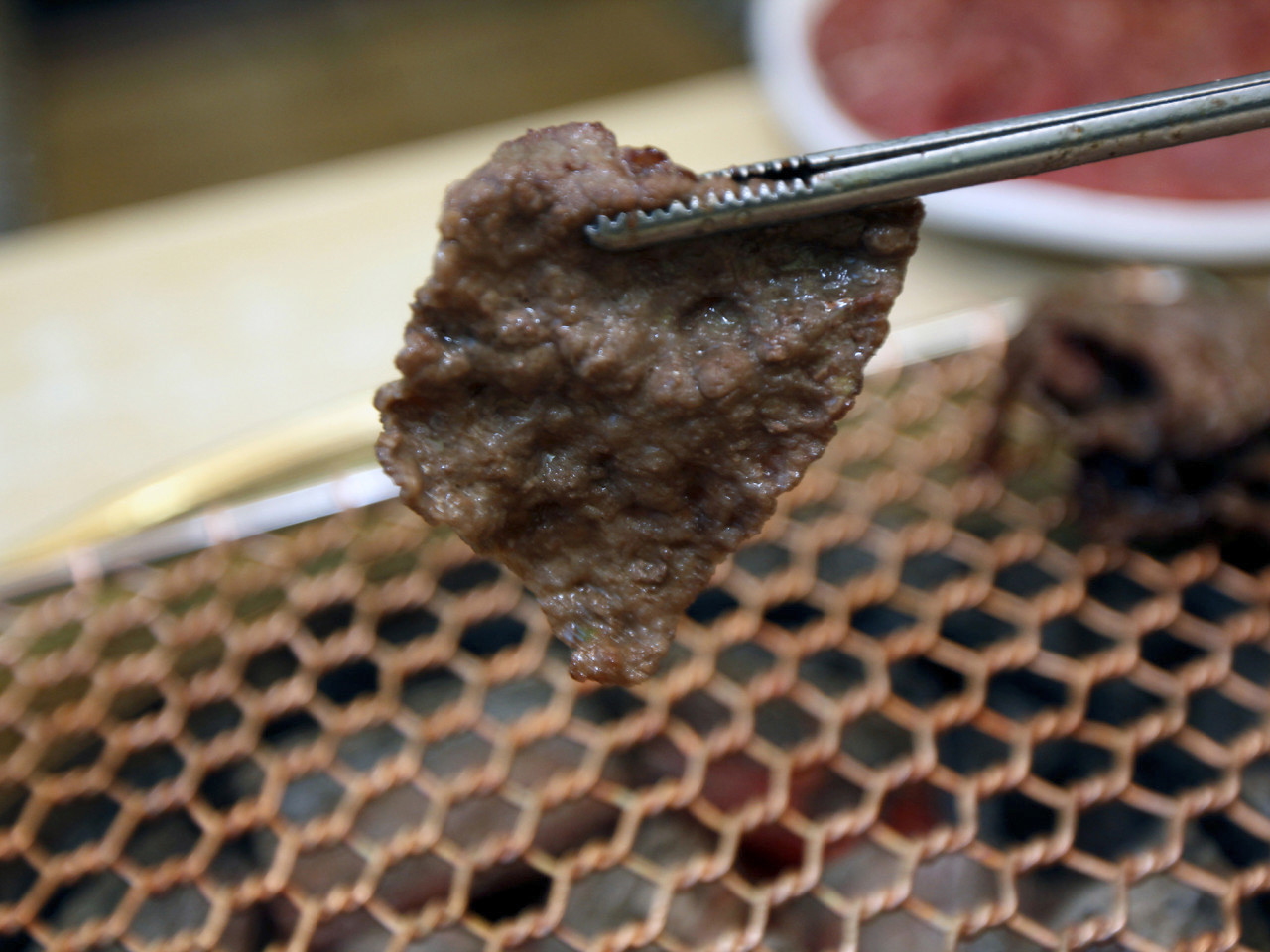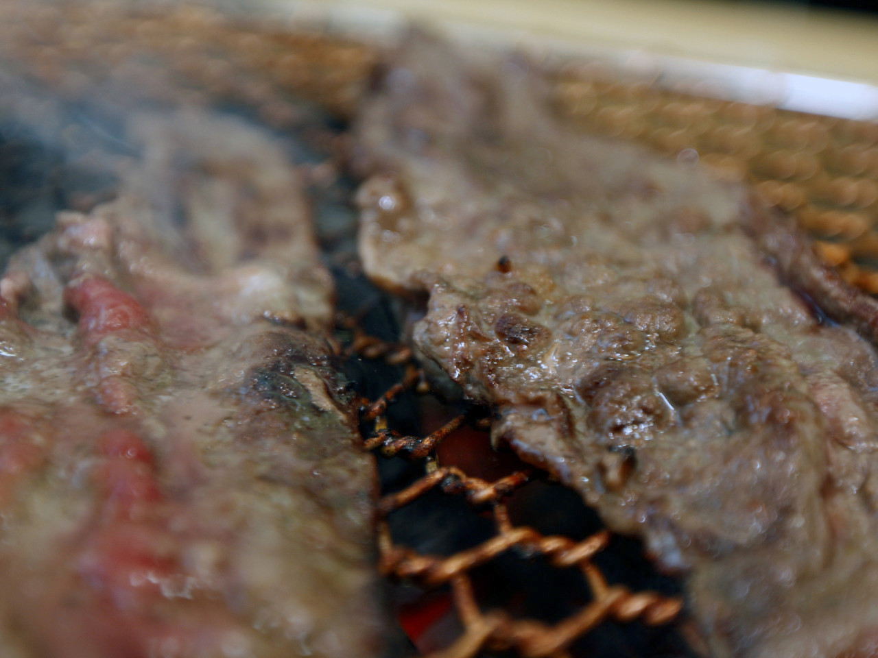 얇은 고기를 직접 숯불 위에 구워 먹는 방식이라
