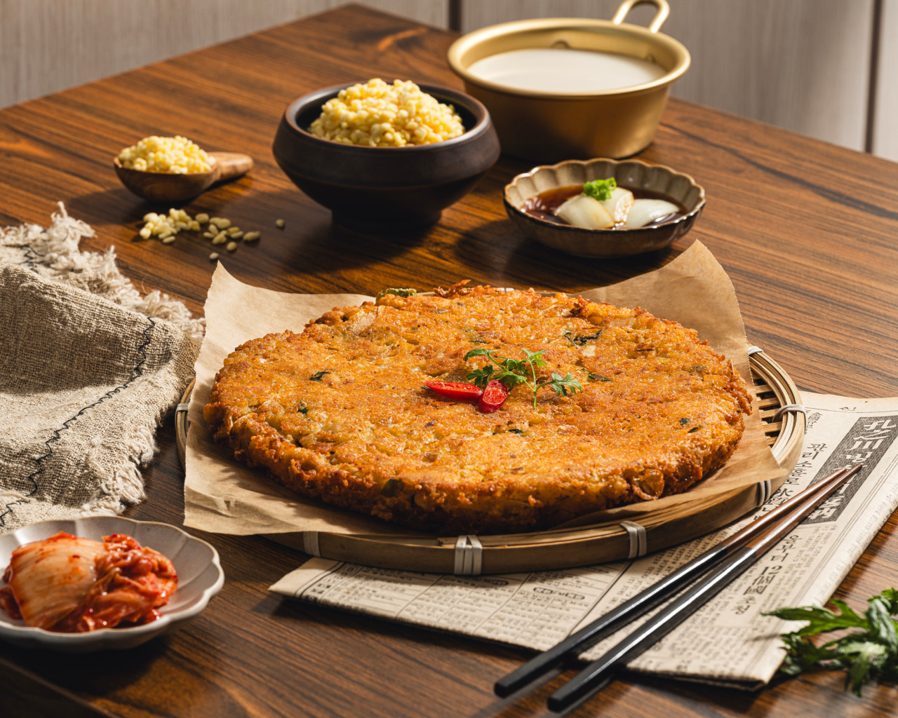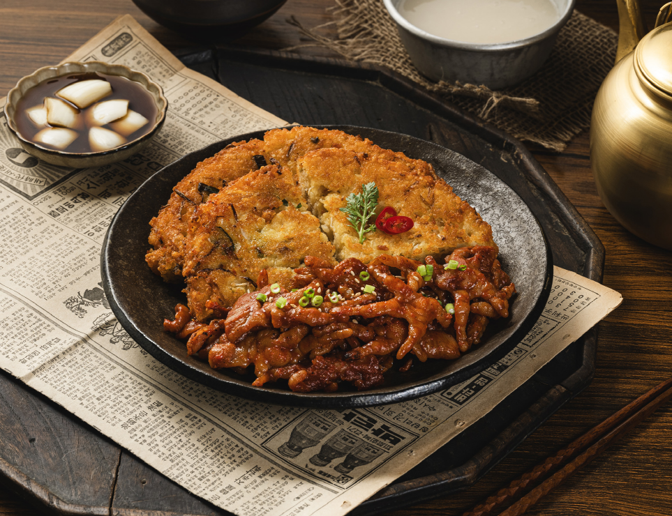 김과 함께 싸 먹으면 감칠맛이 더 살아나요. - 녹두 빈대떡: 고소한 녹두 향이 풍부하고