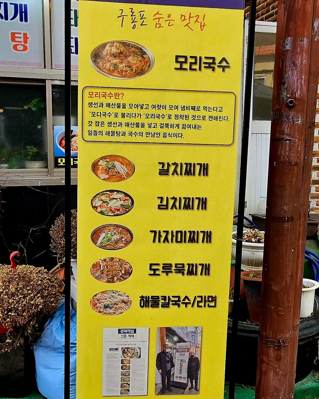 모리국수라는 생소한 이름의 음식이지만, 홍게와 다양한 해산물, 칼칼한 국물, 볶음밥까지 이어지는 코스형 국수로 유명세를 타고 있어요.