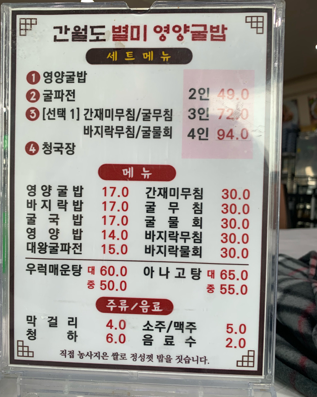 또한, 굴 요리를 메인으로 하다 보니, 굴을 못 드시는 분에게는 선택지가 제한적이에요.