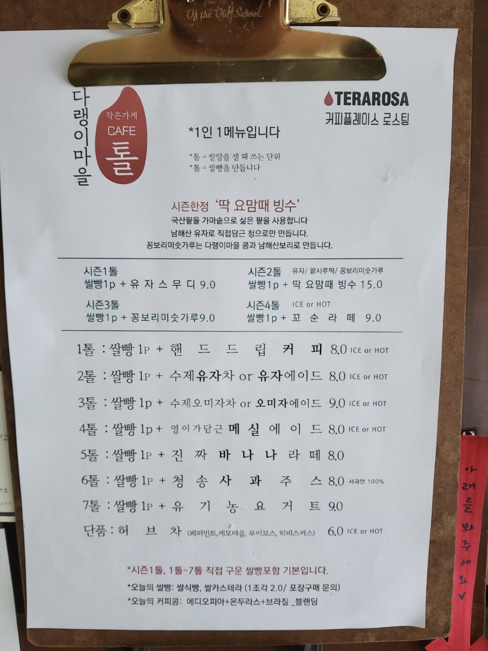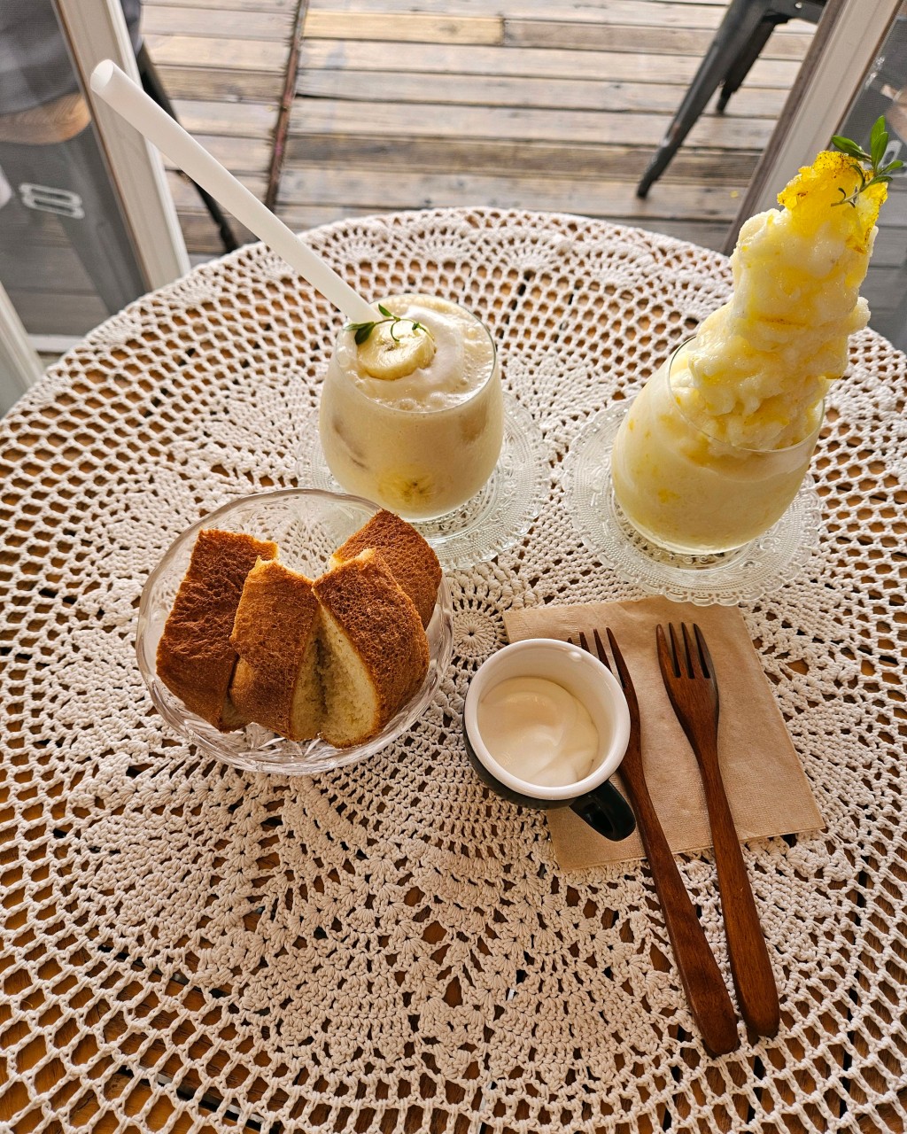 카페 톨의 가장 큰 특징은 쌀을 활용한 디저트와 지역 특산물을 활용한 음료 메뉴다.