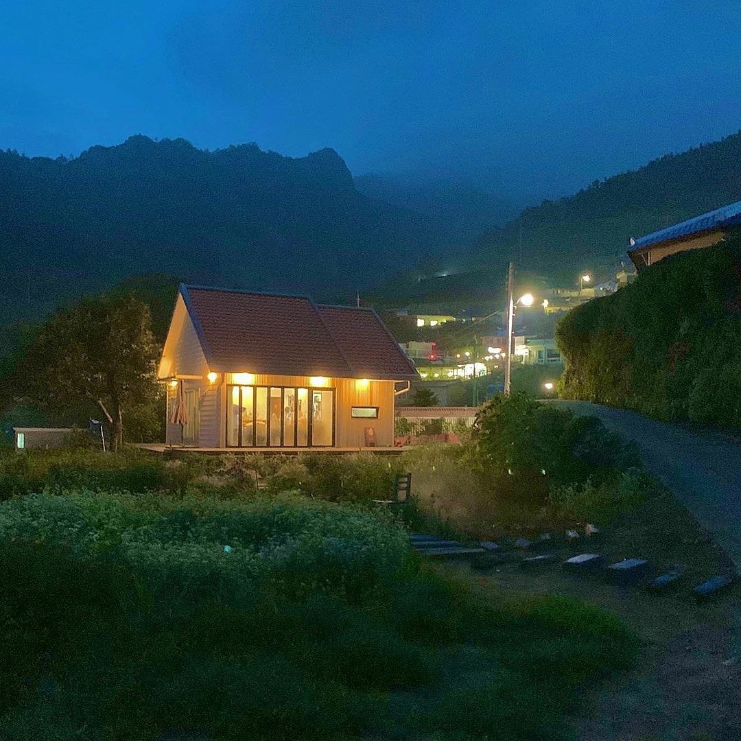 내부는 따뜻한 조명과 우드톤 인테리어로 아늑한 분위기를 자아내며, 창밖으로 이어지는 자연 풍경이 실내에서도 그대로 느껴지는 점이 특징이다.
