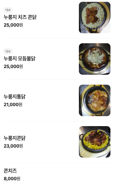 대표 메뉴는 단연 **‘치즈누룽지통닭’**이에요.