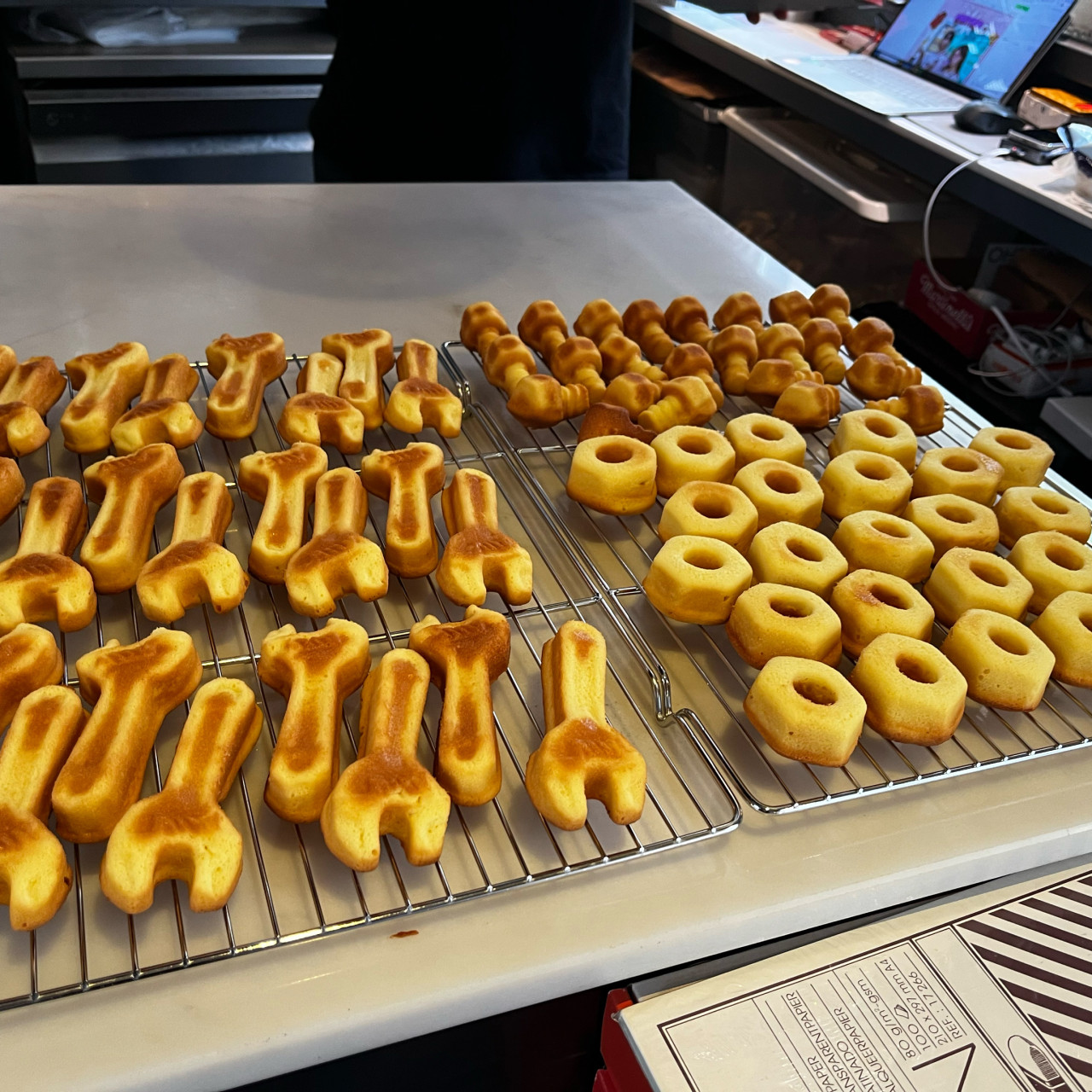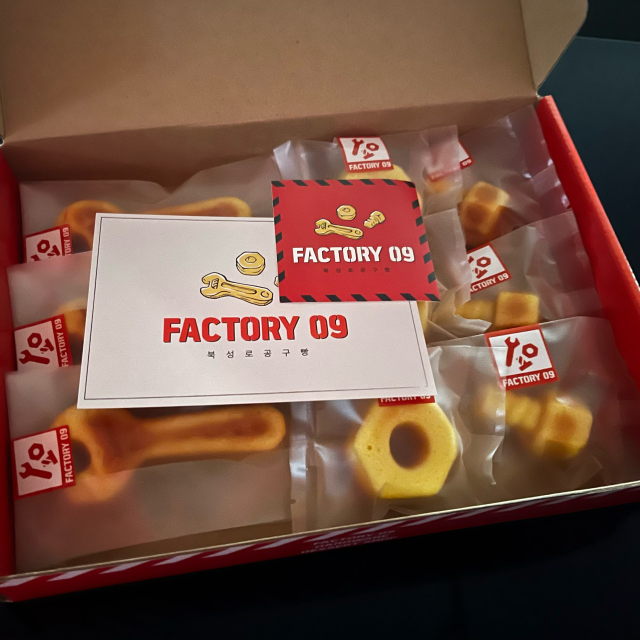 이곳의 대표 메뉴는 공구 모양 마들렌입니다.