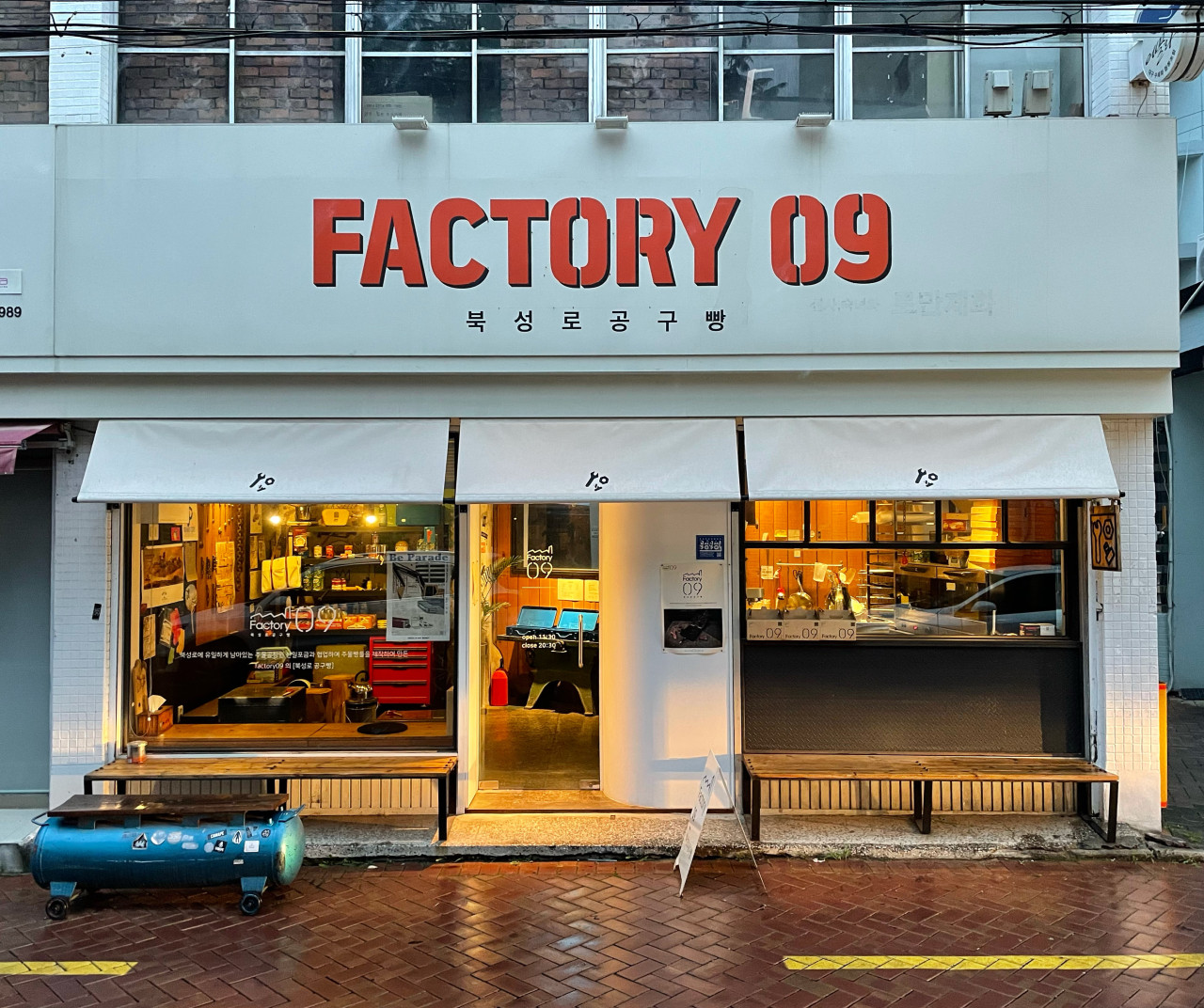 가게 외관은 오래된 공구 거리에 잘 어울리는 인더스트리얼 스타일로 꾸며져 있습니다.