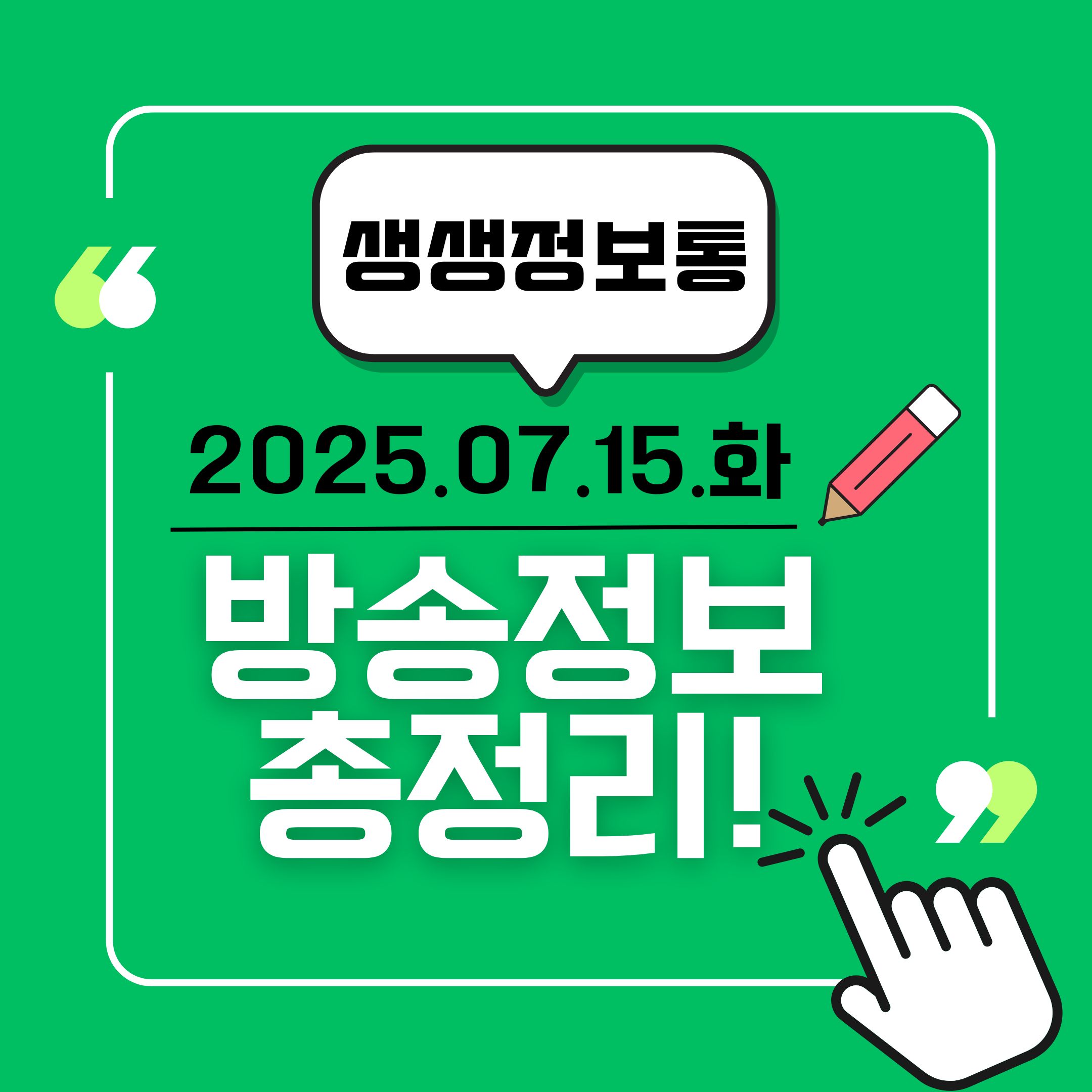 | [2TV 생생정보 2336회] 7월 16일 수요일 방송 정보 총정리 (4) | 2025.07.16 |