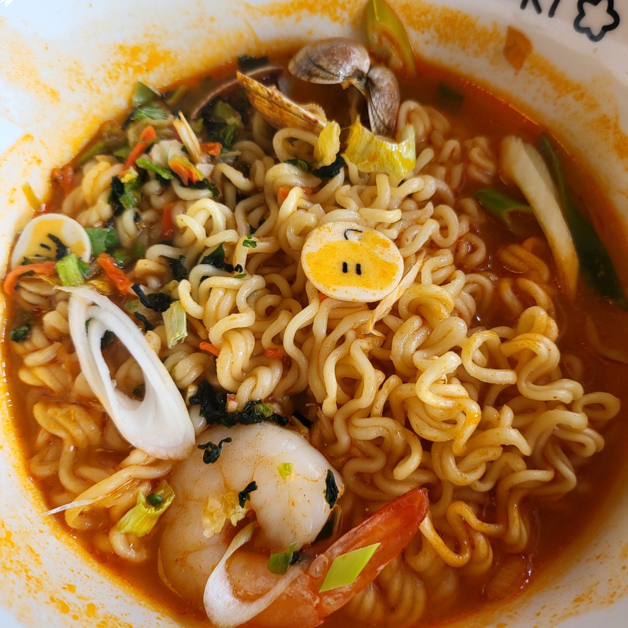 그릇부터 시작해 모든 디테일이 귀여웠어요. 쇠고기맛 라면은 담백하고 깔끔한 맛이었고, 해물짬뽕맛은 얼큰하지만 자극적이지 않아 부담 없이 즐길 수 있었어요. 어묵 위에 프린트된 꿈돌이 캐릭터와 계란, 파송송 올라간 비주얼은 SNS 사진 각이더라구요.
