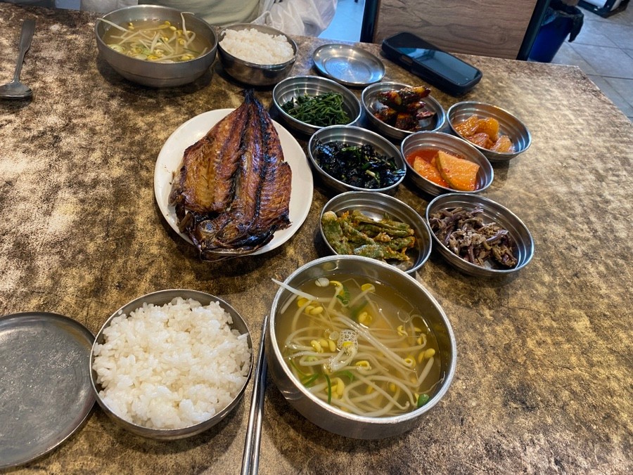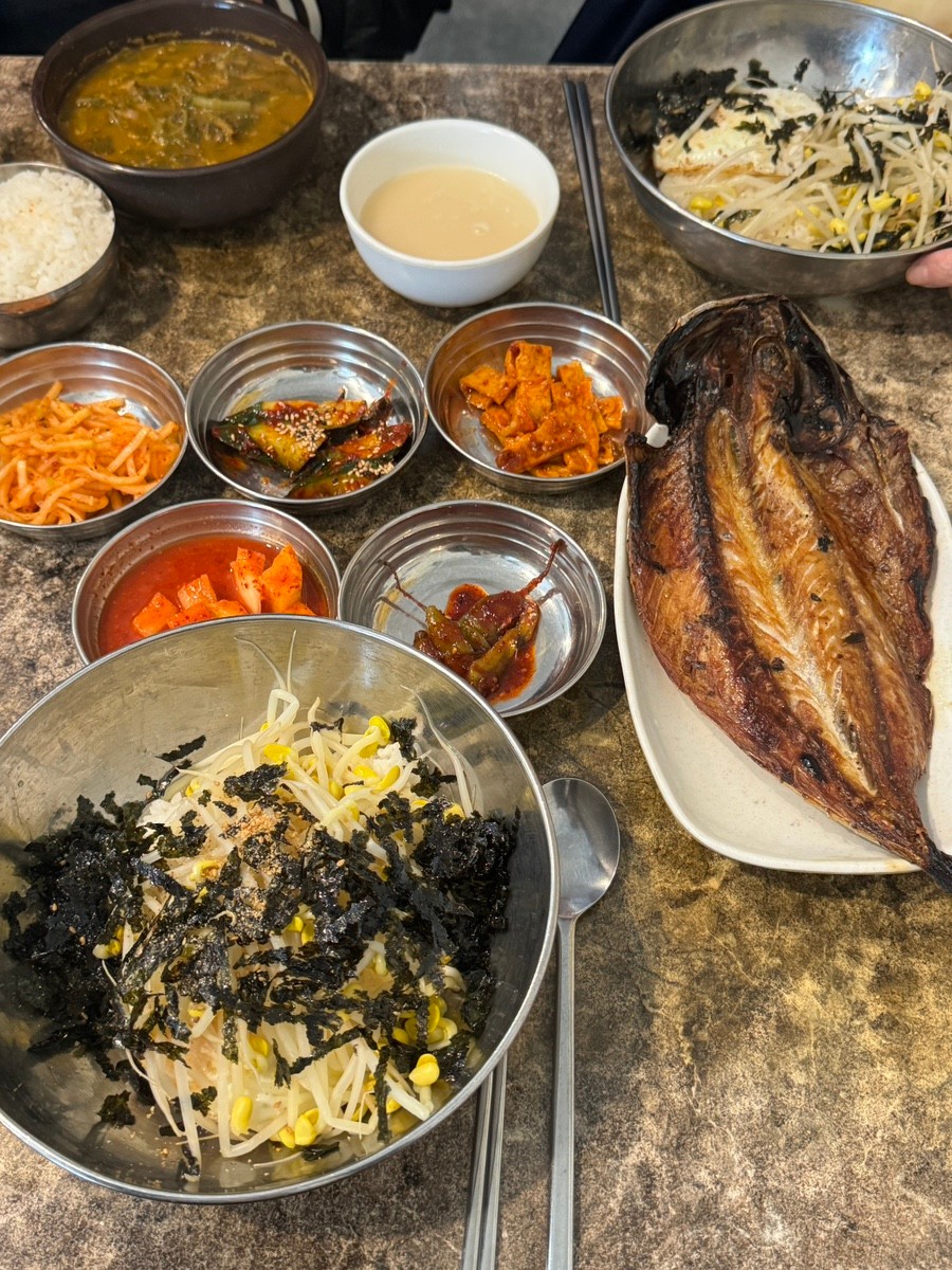 고등어구이 정식은 5,000원으로, 바삭하게 구운 노르웨이산 고등어와 흰쌀밥, 된장찌개, 반찬이 함께 나온다. 겉은 바삭하고 속은 촉촉해 고등어 본연의 고소한 맛을 즐길 수 있다.